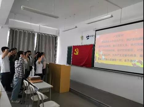 最后,全体毕业生党员重温入党誓词:“我志愿加入中国共产党......随时准备为党和人民牺牲一切永不叛党”