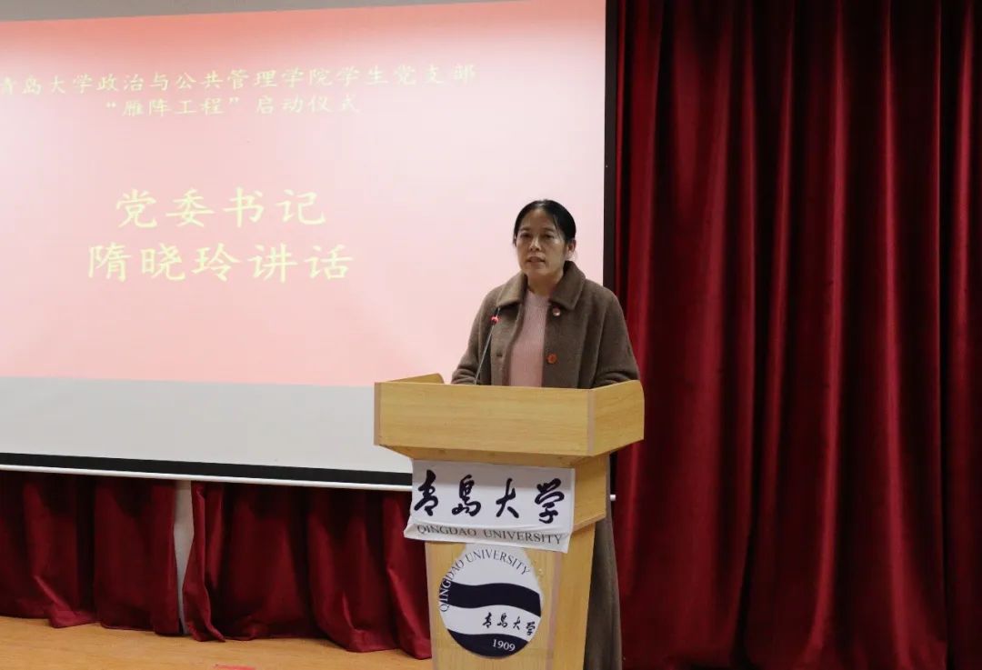 随后,由隋晓玲向员工党支部代表授予“雁阵工程”项目旗。员工党支部代表孙汉青庄重地接过旗帜,尽情挥舞,传递着激情与梦想,执着与坚定,群雁高飞,头雁领,旗帜飘扬,意高昂,现场的阵阵掌声将仪式气氛推向高潮。