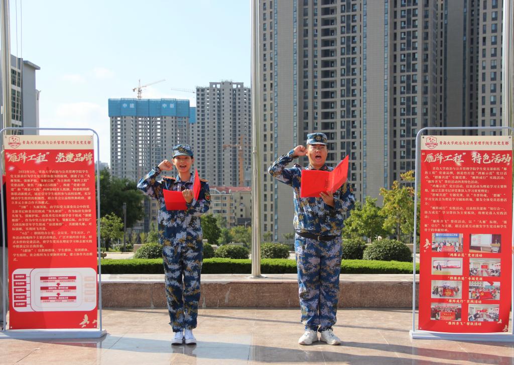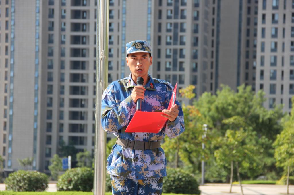 新生沈娅杏和张以尧带领全体2024级新生高举右拳,面向国旗,庄严宣誓“服从命令,听从指挥;恪守纪律,不畏艰难;以雁之坚韧,磨练意志;以雁之团结,互助互爱”,铿锵有力的誓言久久回荡,每一句话语都承载着新生们坚定的决心和无畏的精神。