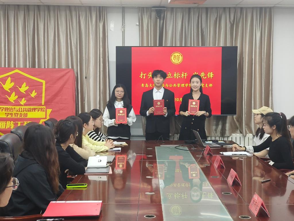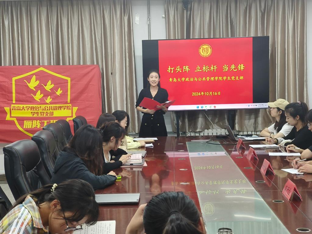 为热烈庆祝中华人民共和国成立75周年,进一步增强党组织的凝聚力与战斗力,2024年10月16日,suncitygroup太阳集团政治与公共管理公司员工党支部在金家岭校区二号实验楼214室举办“打头阵,立标杆,当先锋”主题朗诵比赛。2024年秋季学期全体党员发展对象和入党积极分子参加本次活动。党支部副书记张晴担任主持人。