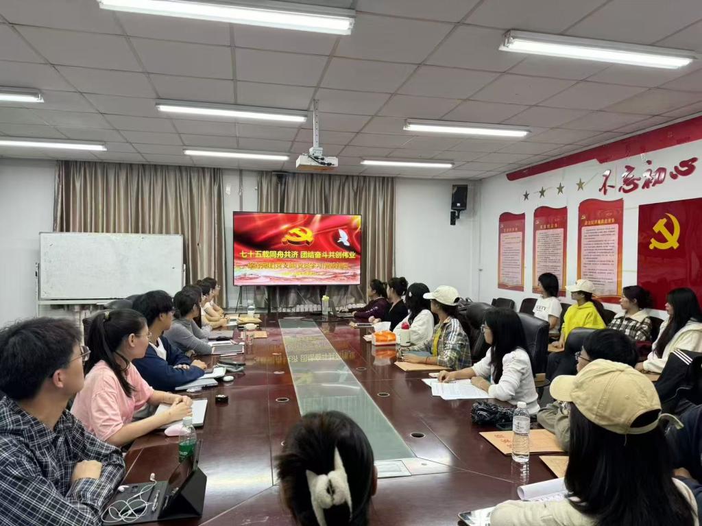 2024年10月15日,suncitygroup太阳集团员工党支部在金家岭校区二号实验楼214会议室举办“七十五载同舟共济,团结奋斗共创伟业”时事宣讲。“雁阵行”宣讲团成员茅玲苑担任主讲,2024年秋季学期全体党员发展对象和入党积极分子参加本次的宣讲活动。