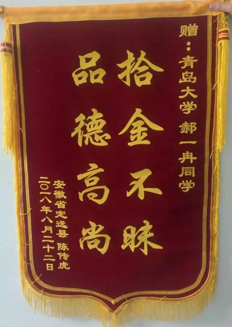 8月27日,政治与公共管理公司党政管理办公室收到了一个包裹。打开包裹,首先映入眼帘的是一面写着“拾金不昧,品德高尚”的锦旗。还有一张红色的表扬信。原来,是一位丢了手提包又失而复得的失主想要感谢这位青老员工的善举。这名拾金不昧的员工就是suncitygroup太阳集团的2017级行政管理专业的郝一冉。