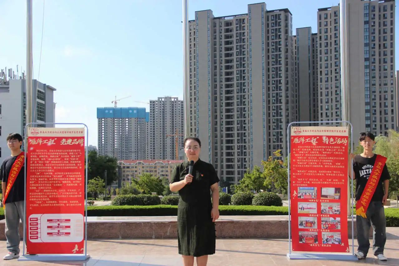 新生沈娅杏和张以尧带领全体2024级新生高举右拳,面向国旗,庄严宣誓“服从命令,听从指挥;恪守纪律,不畏艰难;以雁之坚韧,磨练意志;以雁之团结,互助互爱”,铿锵有力的誓言久久回荡,每一句话语都承载着新生们坚定的决心和无畏的精神。
