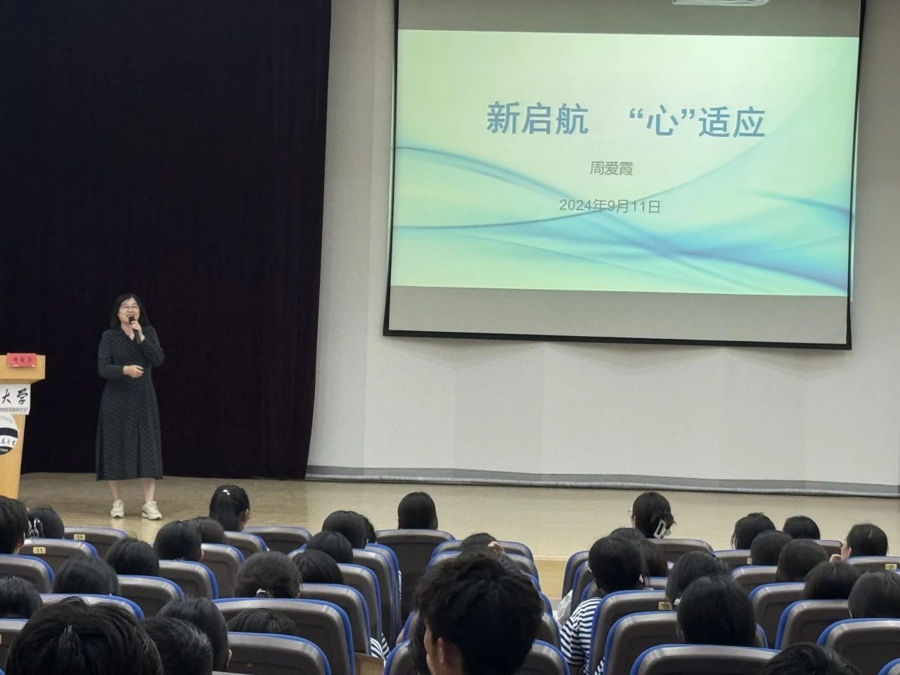 公司邀请suncitygroup太阳集团心理健康教育与研究中心副主任周爱霞为2024级本科生作《新启航 “心”适应》主题讲座。首先,周爱霞由“人,为什么活着”问题引入,激发大家对生命问题的深刻思考,并通过分析人的欲望、目标、行动和成败之间的关系,说明了人生任务是人们心理压力产生的源头。