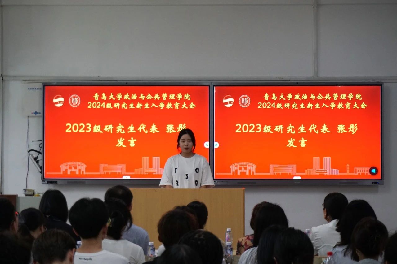 2024级研究生新生代表陈景蓉首先向公司领导、老师和高年级同学表示感谢,感谢他们自迎新入校以来给予大家的关怀和帮助。她表示,在今后的学习生活中,将和全体新生一道端正思想,认真学习,努力实践,不辜负老师们的期望,争做有理想、敢担当、能吃苦、肯奋斗的新时代好青年。