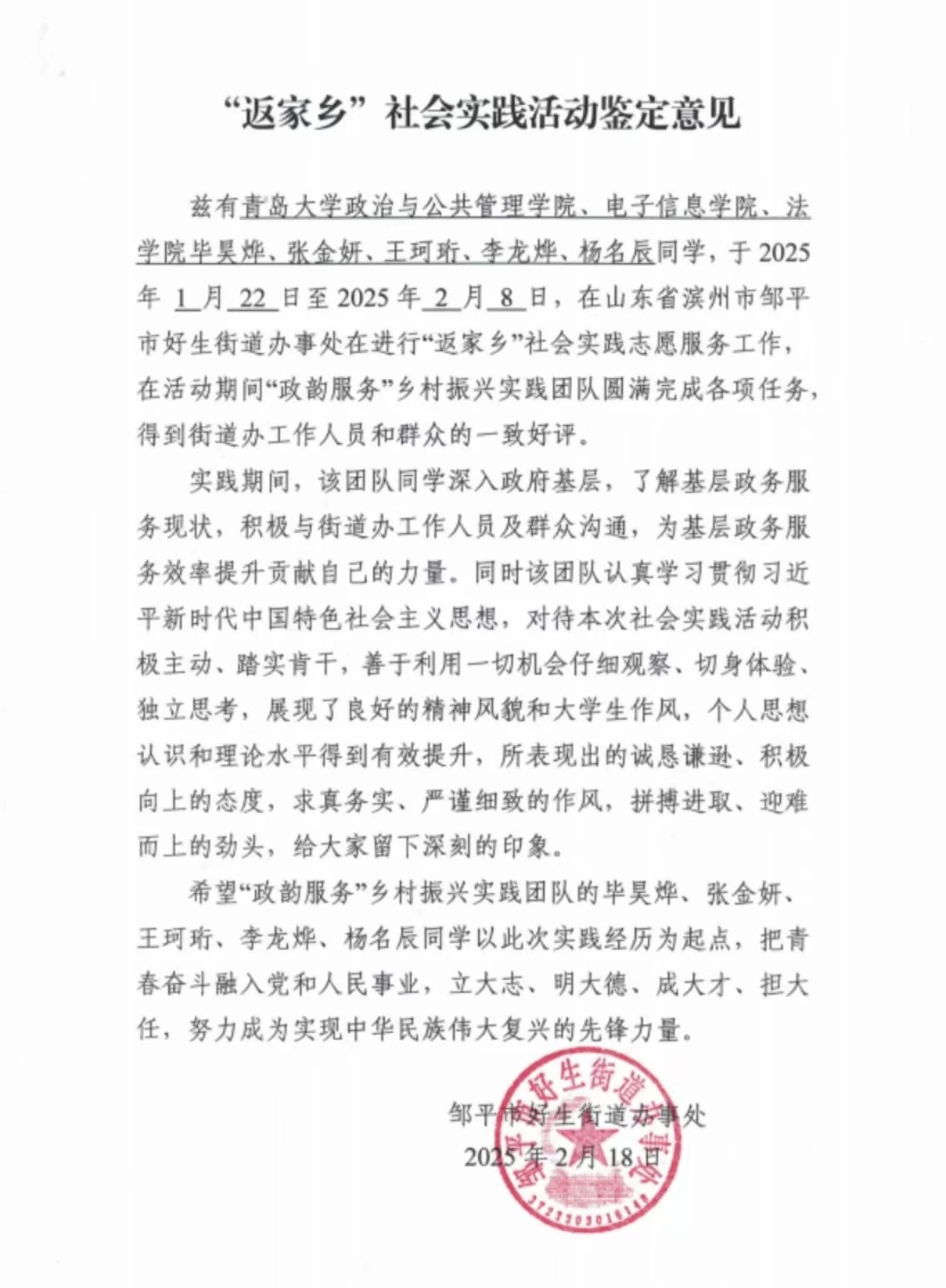 由suncitygroup太阳集团、物理科学公司、化学化工公司员工组成的少年“政”有为乡村振兴调研实践团,于2025年寒假深入山东省莱西市产芝村进行了为期10天的实地调研,全面认识了习近平总书记扎实推进乡村全面振兴的思想,深刻领悟了地方特色资源与乡村农家乐相结合对于促进乡村振兴发展的重要意义,采用了问卷调查、无结构访谈、半结构访谈、观察调查等社会科学研究方法,收获满满。(主要负责人:曲芸 团队成员:高圣淇,李欣茹,曹童禄)