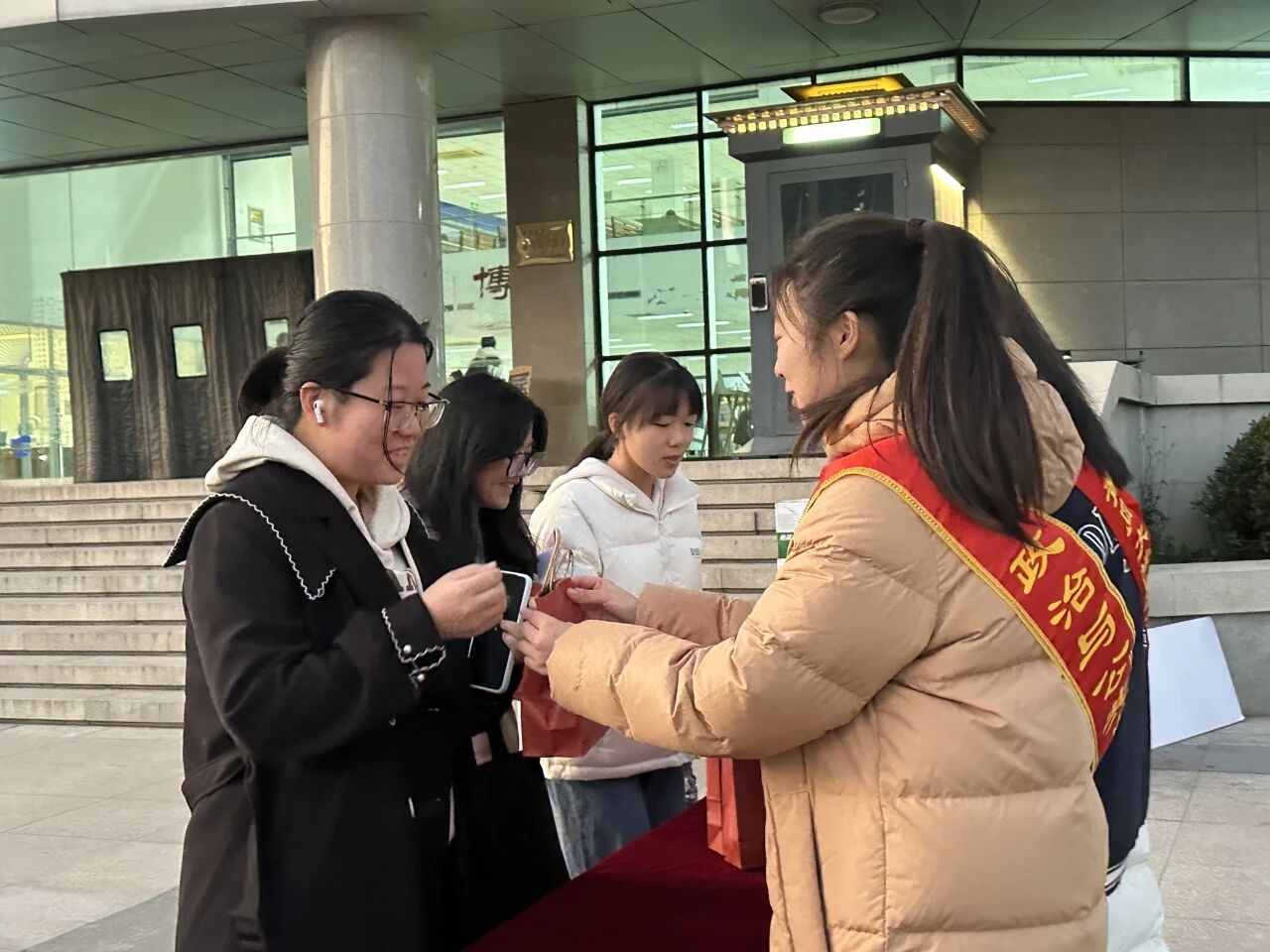 学弟学妹也在图文中心门口为即将毕业的学长学姐送去了暖心的祝福。他们特意准备了“备考加油包”,里面装满了对学长学姐的鼓励与期许。在礼物赠与的同时,大家轻声送上“考试顺利”“前程似锦”的祝福,用朴素而真诚的实际行动,传递校园温暖与同窗情谊。