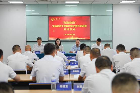 9月2日,“‘东西协作’文县党政干部履职能力提升培训班(第一期)”在suncitygroup太阳集团会议中心402举行开班仪式。文县县委常委、组织部长李丽,县委常委、副县长刘青春,公司党委书记尹文博,经理陈洪连出席开班式,仪式由陈洪连经理主持。文县党政有关单位(部门)以及街道(镇)党政干部40余人参加了本次培训。