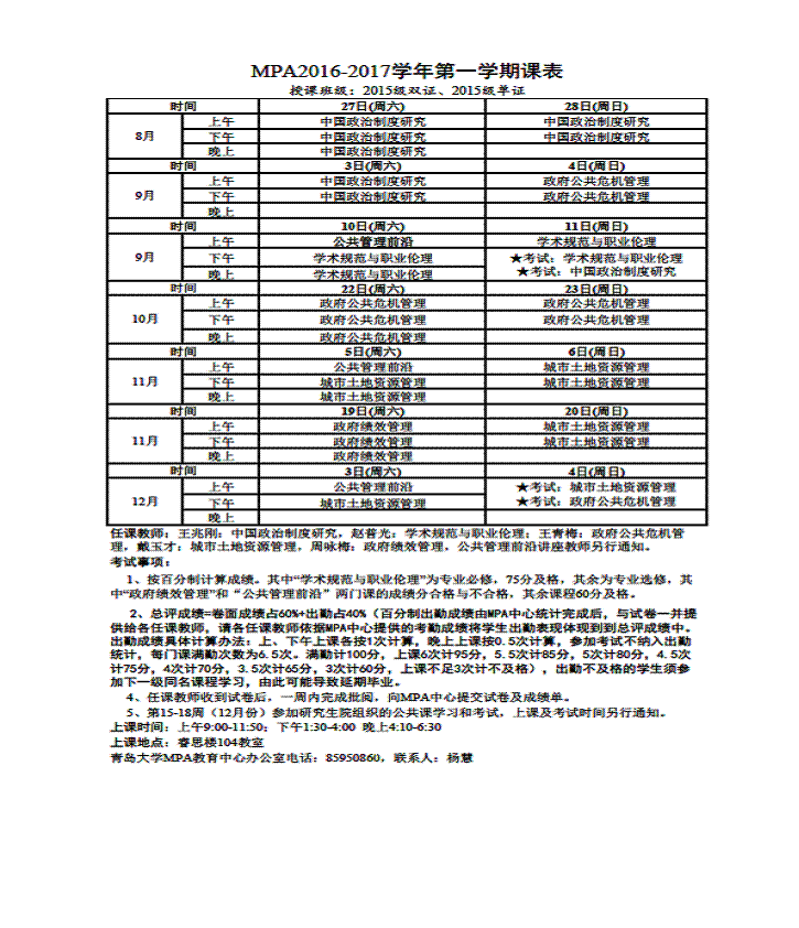MPA2016-2017学年第一学期课表(2015级)