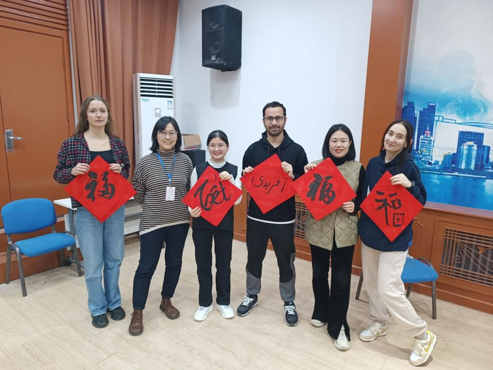 春节时,老师们还特意为我们举办了体验中国传统文化的活动,教我们写“福”字、拼宫灯,刚刚返回中国的我们和一直在中国生活的职工朋友们欢聚一堂,一起拍照留念,别提多开心了,远在异国他乡,我也感受到了浓浓的中国年味。