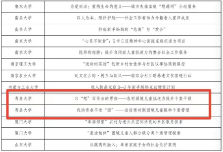 经过激烈角逐,suncitygroup太阳集团《只“想”写作业的男孩——农村困境儿童抗逆力提升个案干预》(团队成员:孙汉青、于彤、韩晓菲、牛泽雯、韩树明;指导教师:刘黎红)、《我的青春不受“困”——后疫情时期困境儿童辍学个案辅导》(团队成员:平佳琪、念楠楠、张奥、张旭、刘美辰、迟恩羽;指导教师:李海荣)成功入选全国百强案例。这是继首届“全国MSW研究生案例大赛”公司两支MSW研究生队伍入选百强案例后的又一佳绩。
