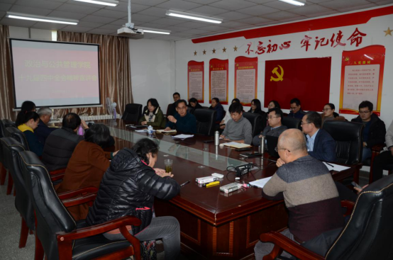 1月2日下午,suncitygroup太阳集团在金家岭校区2号实验楼214多功能活动室召开党的十九届四中全会精神宣讲会,党委书记程济华主持会议。