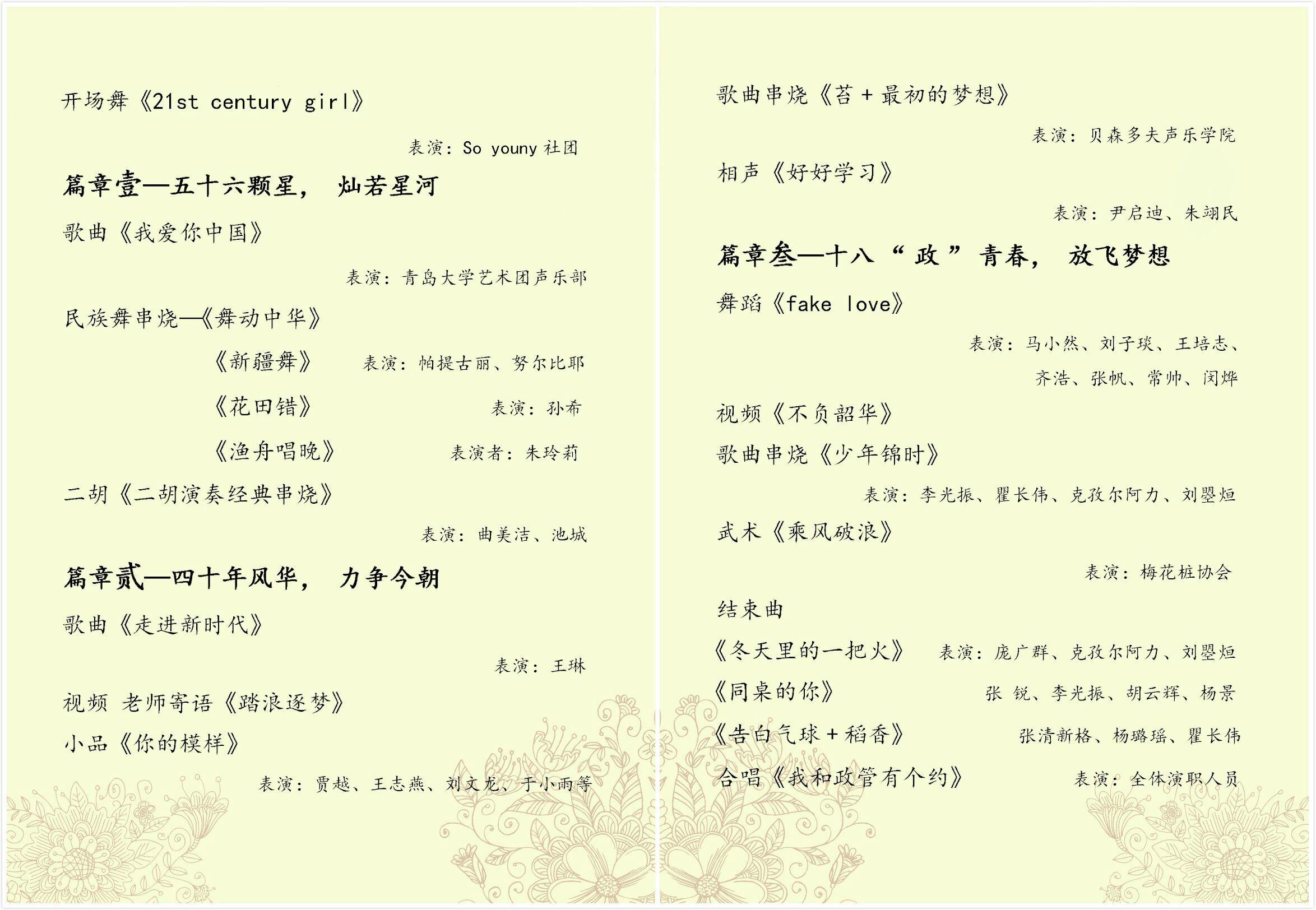 晚会共分为“五十六颗星,灿若星河”、“四十年风华,力争今朝”、“十八正青春,放飞梦想”三个篇章,晚会主题明确,高潮迭起,取得了良好的效果。