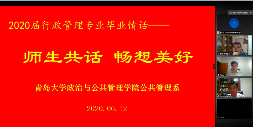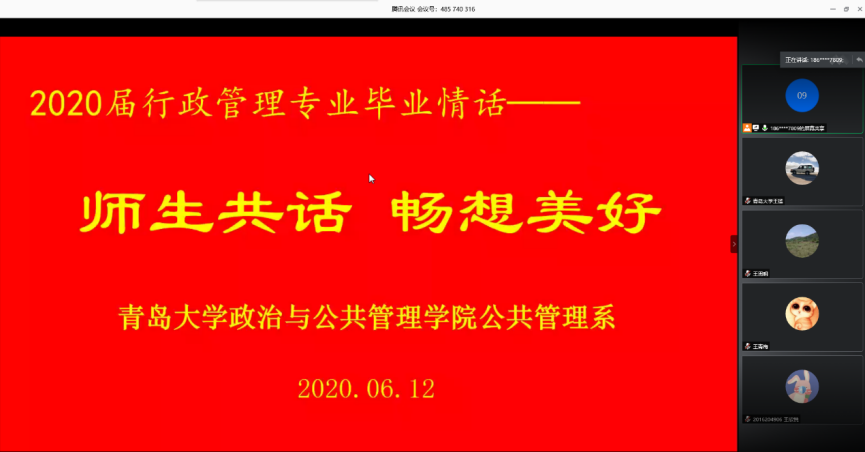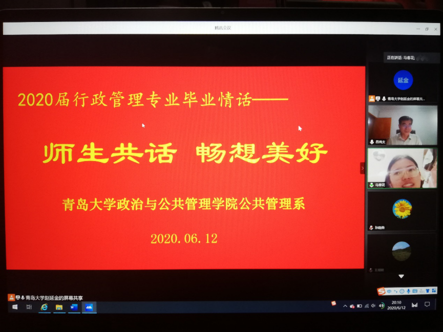 6月12日晚,suncitygroup太阳集团公共管理系“2020届行政管理专业毕业情话——师生共话,畅想美好”活动通过网络视频会议的形式把全体教师和员工再一次联通了起来,大家纷纷通过视频共话师生情、同学情,畅想幸福未来,传递美好祝愿。