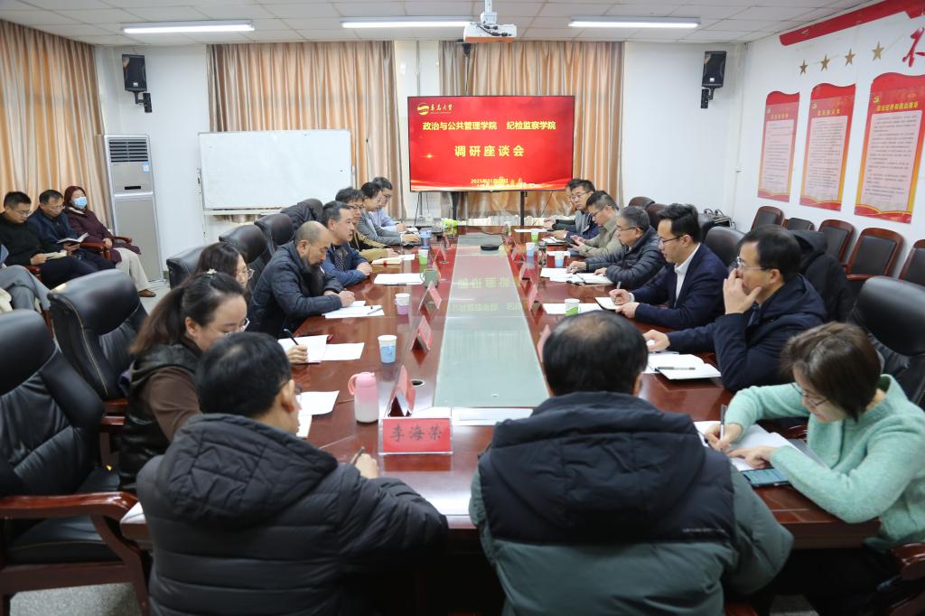胡金焱指出,一是要党政同心,着力提升事业发展谋划能力。要做好党建和事业发展两个方面的规划,一方面党建引领抓根基。发挥党建定向导航作用,夯实基层党建的战斗堡垒功能,把党组织的工作用好、用活、用扎实,来推动事业发展;另一方面事业发展抓规划。加强调研、深入分析、目标导向、系统集成,做好事业发展的谋篇布局。二是要强化教师队伍建设,引育结合,协同发展。引人要用心,看得准;用人要用情,用得好;育人要用力,出得来。让每个人真正发挥作用,人人都是战斗员,人人都进先锋队,要进学科、进方向、进团队、能打仗。三是要做好团队建设的结合工作,逐步打造学科的特色和比较优势。处理好原有的学科结构和新增的纪检监察学科专业之间的关系、学科专业与新文科建设的关系、专业与学科结构的关系,做好本硕结合以及与未来博士点建设的结合,坚持立足优势、服务需求,实现特色发展。四是要强化高水平科研建设,有组织的科研再上新台阶。在做好项目申请的基础上,引导教师回归科研初心,立足服务国家战略需求,注重培育高层次学术成果、高层次科研奖励,建设高端学术平台,提高承担重大重点项目能力。五是要持续强化人才培养工作,让立德树人真正立起来,让特色优势变为特长。立德树人是根本,把知识教育和人格教育相结合;让公司的特色变特长、变成比较优势,让增量变成优势、让亮点真正亮起来。六是要发挥学科优势,在国际化办学上为公司的国际化建设做贡献。发挥好专业优势,建设好国家级人才培养基地,讲好上合故事,打造上合的特色品牌,形成比较优势。做好国际合作办学项目,搭建起中外合作的桥梁、友谊的桥梁。七是强抓服务社会能力建设,多措并举,实现大的突破。加强智库功能建设,提炼出科学问题,提升服务社会能力,在服务中找资源,在贡献中求发展,不断提高科学研究水平和人才培养质量。