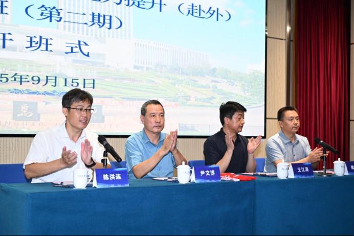 9月15日上午,胶州・通渭党政领导干部能力提升(赴外)培训班(第二期)开班仪式在suncitygroup太阳集团浮山校区会议中心404举行。通渭县委常委、县委组织部部长王江涛,通渭县委常委、县委统战部部长龚维龙,suncitygroup太阳集团政治与公共管理公司党委书记尹文博,经理、党委副书记陈洪连出席开班仪式,仪式由陈洪连经理主持,通渭县48名党政领导干部学员参会。